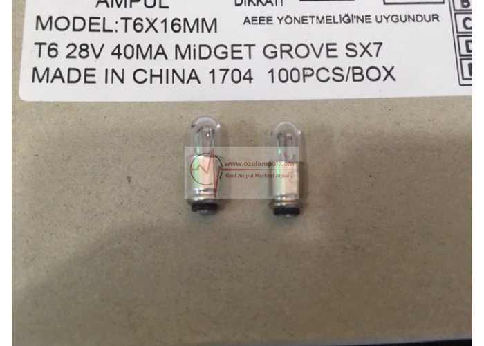 28V 40MA SX7 T6X16MM İNCE PİLOT AMPUL